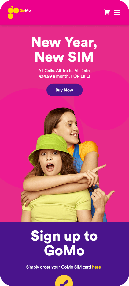 GoMo est un réseau mobile révolutionnaire 🦄 , lancé par NJJ (holding de Xavier Niel) sur les marchés Irlandais et Suisse. Site web, Eshop & application mobile pour la gestion du compte client. De nombreux ateliers avec les product owners et les équipes de développement afin de garantir une expérience utilisateur optimale pour le parcours de vente et la gestion du compte client. Plus de 300 000 clients depuis son lancement 😍 GoMo 2021